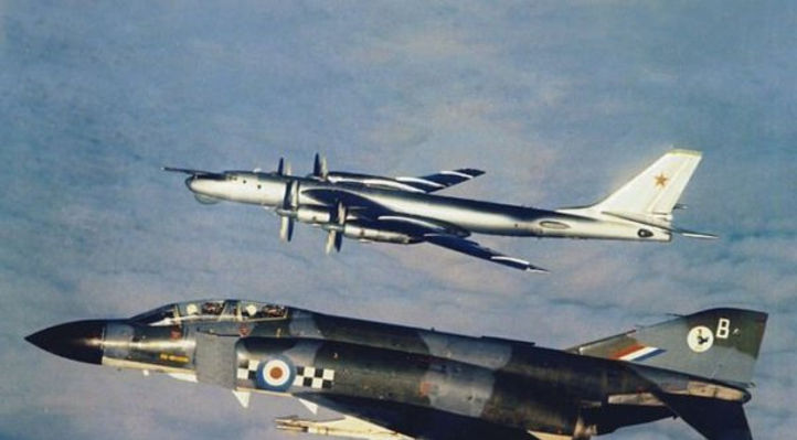 Soviet TU-95 'Bears' from Red Force were regular visitors, taking a look at what was going on,but were usually intercepted at great distance from the convoy. Photos: MoD Navy.